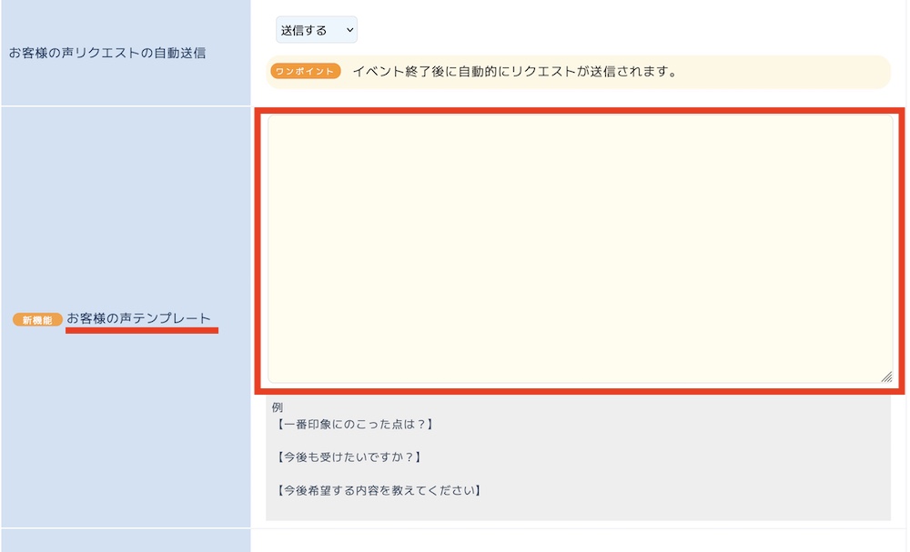 お客様の声リクエストのデフォルトの文章が変わりました。