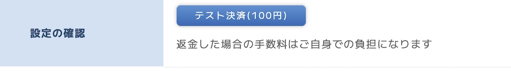 「テスト決済(100円)」の項目が追加されていますので、連携できたか心配だった方には安心です。