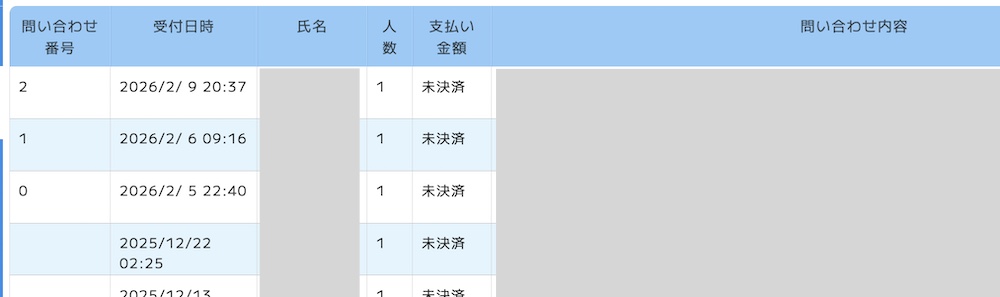 以下の多目的ページはある申し込み用のページです。この連番機能が付いてから「0、1、2」と連番が振られており、次に申し込みがあったときは「3」が振られるようです。
