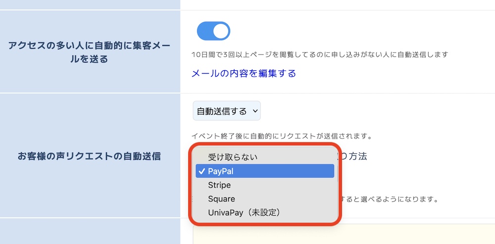 銀行振込以外の決済方法を設定をしておかなければこの機能は使えません。