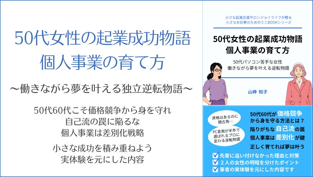 「50代女性の起業成功物語:個人事業の育て方」はパソコン苦手な女性が働きながら夢を叶える物語です。