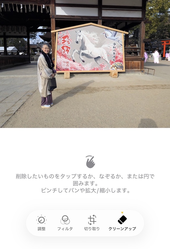 これまでもiPhoneで人物や猫など特定のモノを切り取る機能(長押しで選択切り取り)は使っていましたが、写真の特定の部分だけを削除して画像を整えてくれる機能はありがたいですね。