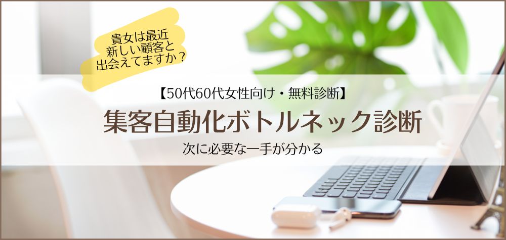 この講座では、50代・60代の女性個人事業主の悩みに特化し、リザストなどのサービスを使いながら、すぐに使える診断テストを作成します。